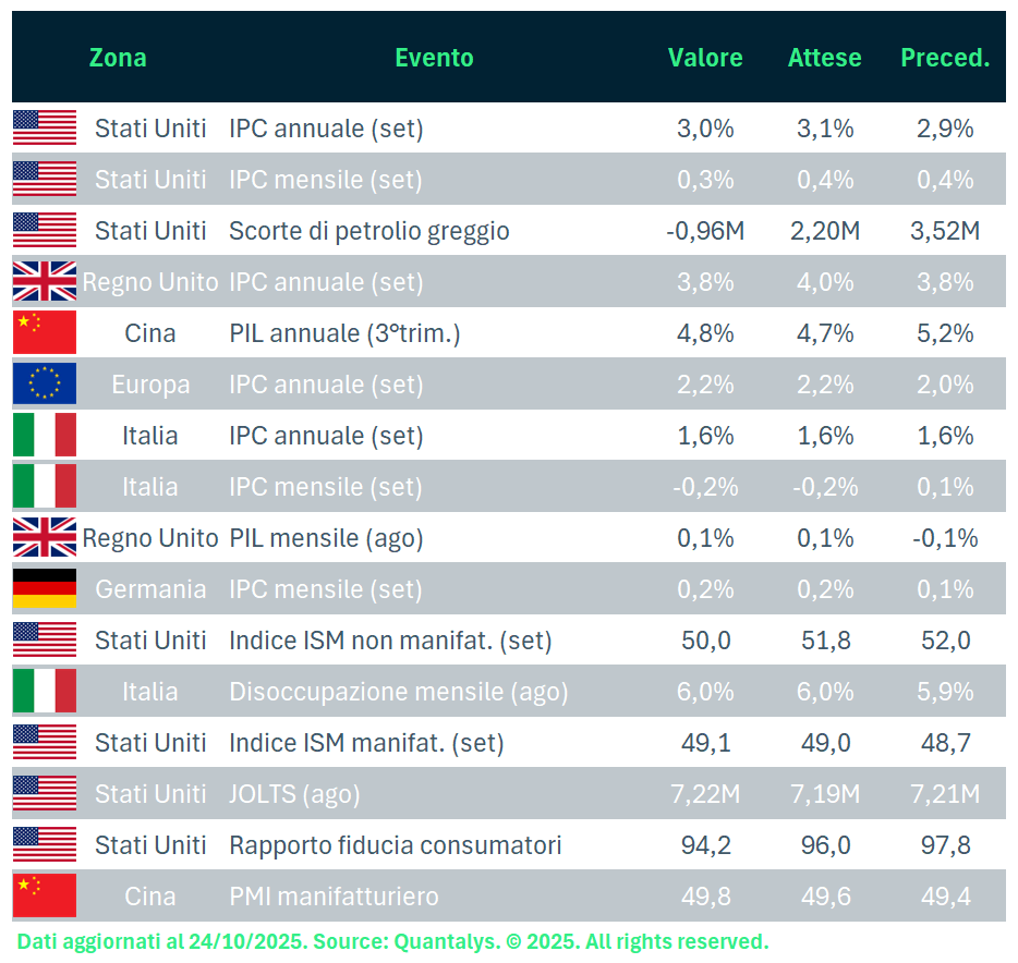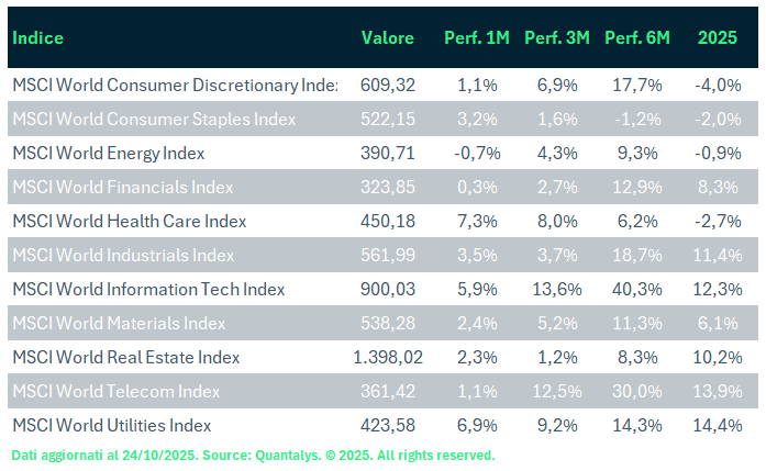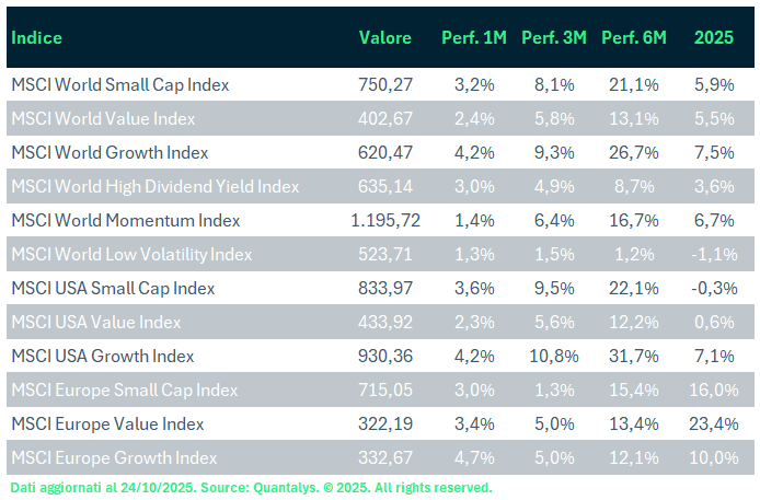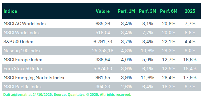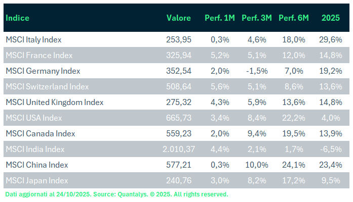 © 2025 Quantalys. Tutti i diritti riservati. Le informazioni fornite sono di proprietà di Quantalys Italia Harvest Group; possono non essere esaustive e non costituiscono raccomandazione o sollecitazione all’investimento. Quantalys Italia Harvest Group non si assume alcuna responsabilità per le eventuali conseguenze derivanti da decisioni assunte o iniziative intraprese sulla base delle informazioni riportate nel presente documento. Tutti i dati sono aggiornati alla data indicata e attribuiti a Quantalys Italia Harvest Group, salvo diversa indicazione.