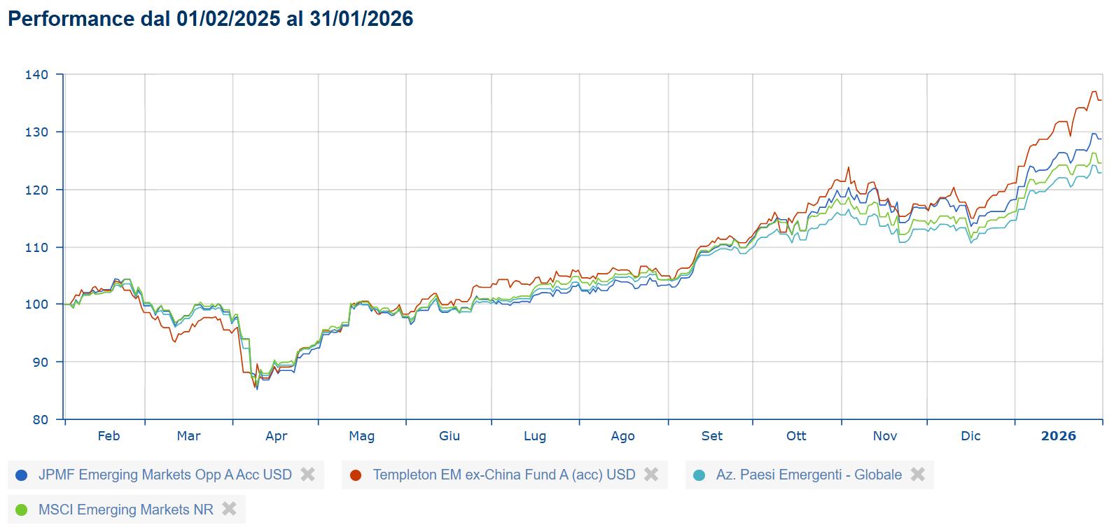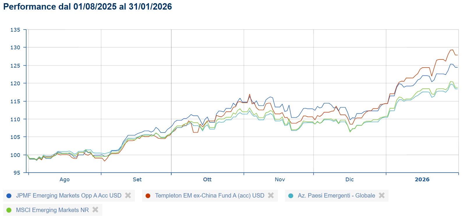 * La metodologia utilizzata per l'elaborazione dei dati è interna a Quantalys. I calcoli sono aggiornati al 31/01/2026. I calcoli sono effettuati da Quantalys e sono basati sui dati inviati giornalmente dalle società di gestione. Eventuali errori o omissioni sono di esclusiva responsabilità di Quantalys. Nonostante la massima cura prestata nella raccolta, nella verifica e nell’elaborazione dei dati provenienti da fonti ritenute affidabili, Quantalys non garantisce che i dati ricevuti siano accurati. Tutti i calcoli sono effettuati in euro.