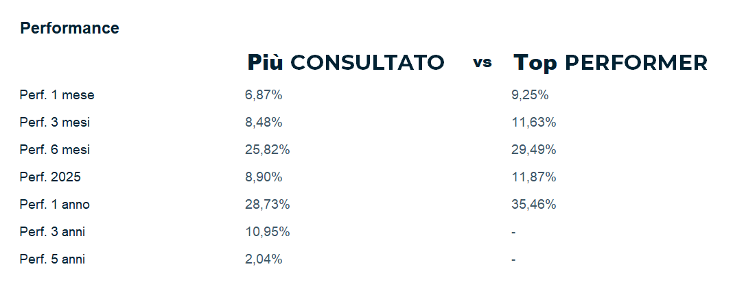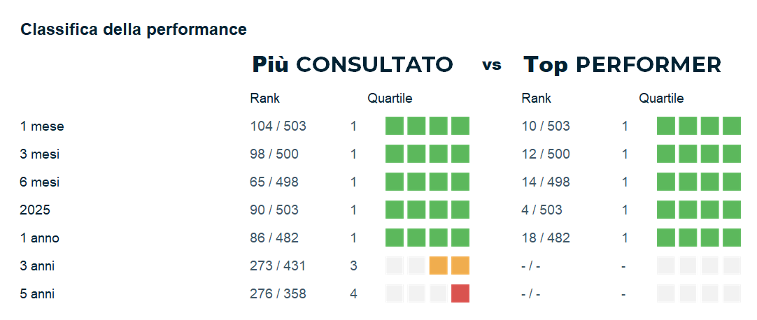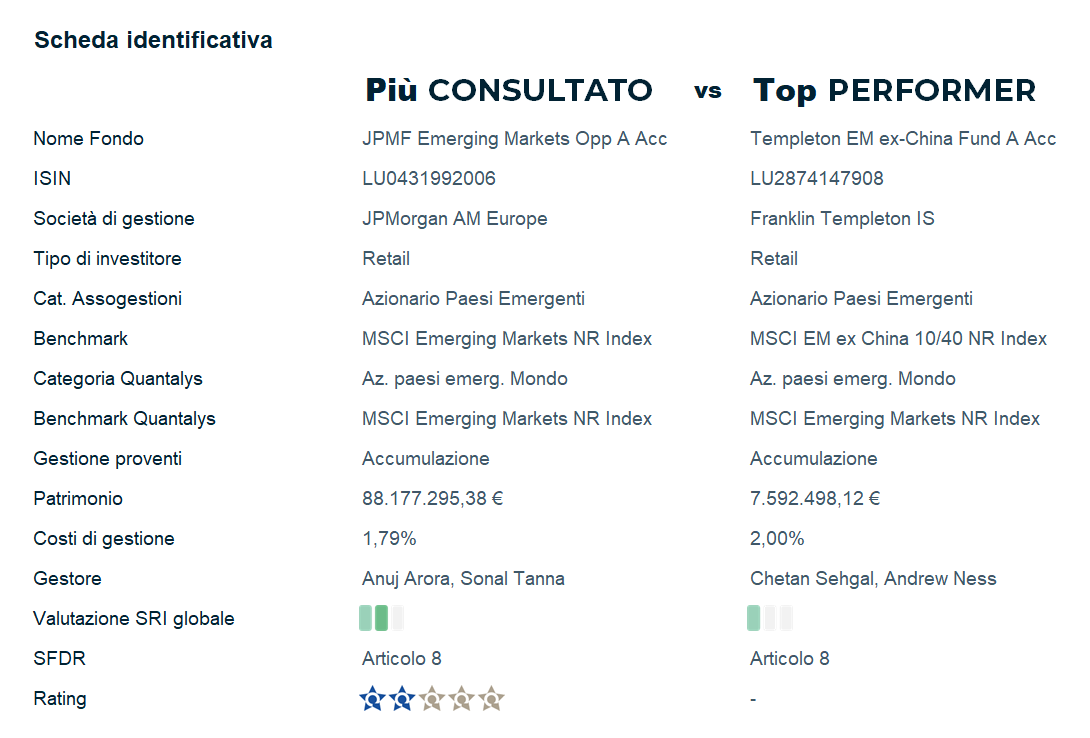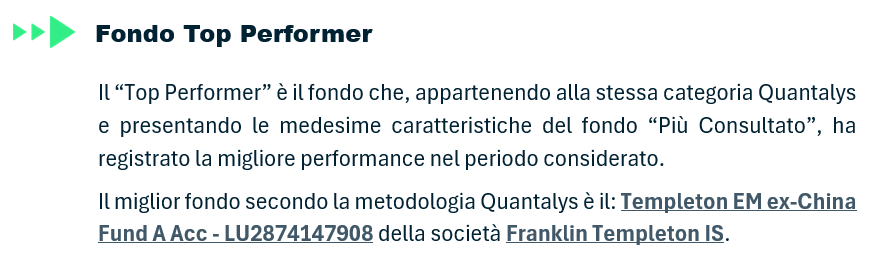 Scopri le schede Quantalys del fondo “Più Consultato” e del fondo “Top Performer”, appartenente alla stessa categoria Quantalys di febbraio 2026.