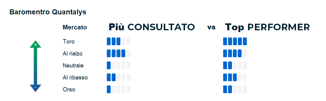 © 2026 Quantalys. Tutti i diritti riservati. Le informazioni fornite sono di proprietà di Quantalys Italia Harvest Group; possono non essere esaustive e non costituiscono raccomandazione o sollecitazione all’investimento. Quantalys Italia Harvest Group non si assume alcuna responsabilità per le eventuali conseguenze derivanti da decisioni assunte o iniziative intraprese sulla base delle informazioni riportate nel presente documento. Tutti i dati sono aggiornati alla data indicata e attribuiti a Quantalys Italia Harvest Group, salvo diversa indicazione.